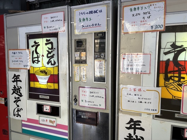 大晦日は毎年ここに来てます!今なら年末年始限定で、通常ひもかわの枠が年越し蕎麦に様変わりなの。「天ぷらそば」をずるっといただきました。寒いので身体がほっこり温まり、いい年越しができそうな予感!また、海老天、かき揚げ、山菜、わかめ、青唐辛子の具が入ってて豪華です!店主さんもちょうどきて、補充をしていました。年末もありがとうございます