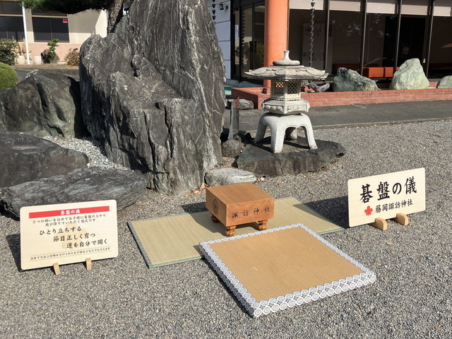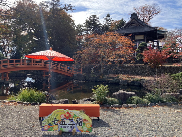 そば屋さんの前にこちらへお参りに。七五三詣の方でとてもにぎわっていました。この季節ならではの抜群の記念撮影スポットも。「碁盤の儀」というものがあって、七五三祈願を受けた子が3つの願いを込めて碁盤から飛び下りる儀式だそうです。お参りのあとそばを走る八高線の小さな踏切へ。「諏訪神社踏切」と看板がありました!