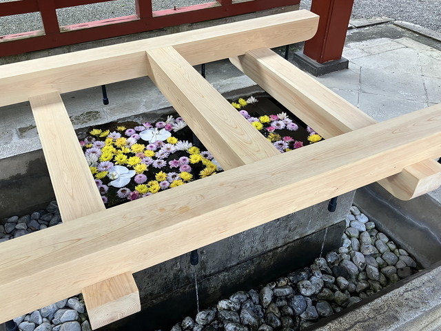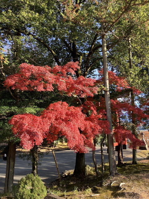 前回のお参りは夏真っ盛りの8月、気付けばはや晩秋です。長らく使えなかった手水が改修されてきれいな花手水に。水も自動で出るようになっていました。大鳥居の横に公園のようなスペースがあります。モミジがとてもきれいで大鳥居をバックに撮ってみました♬