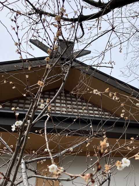 大川屋さんのあとお参りに。「熊野 難逃れの半鐘」のあと「八咫烏御影石」に触れて運気を取り入れさせて頂きました。風が強くてピントが合いませんでしたが、お社横の「祝の正月桜」はこれから咲き揃う感じですね♬