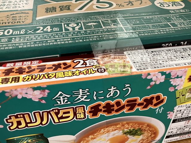 「金麦糖質75%オフ」の仕入れに。12月に寄った時は何と在庫がなく他のやまやさんに回りましたが、今日は無事買えました。今回はガリバタ風味のチキラー付き♬