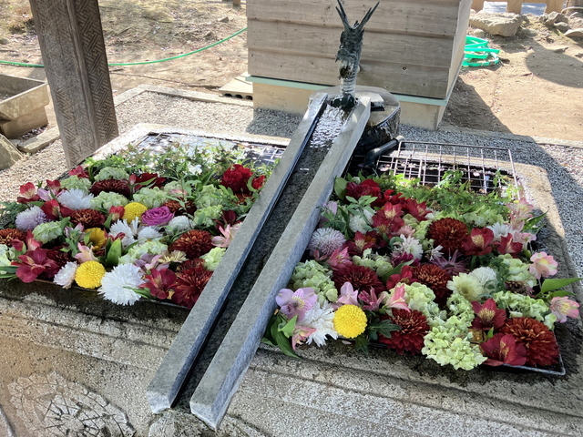 今年最初のお参りに。自動で出る手水の水が吹き飛ばされるほどの強風でした。そんな中、社務所も新しくなってお参りの方が次々にいらしていました♬