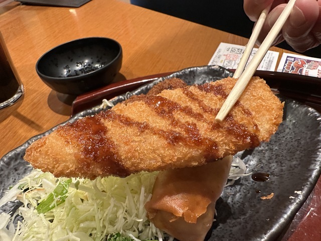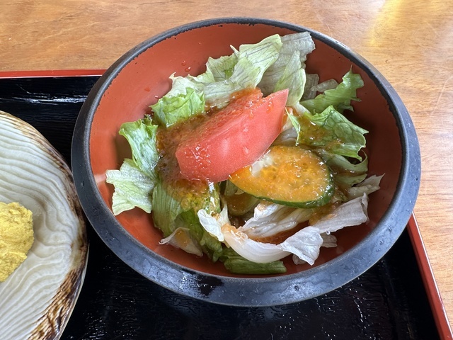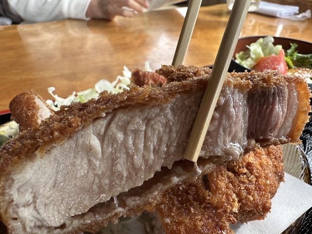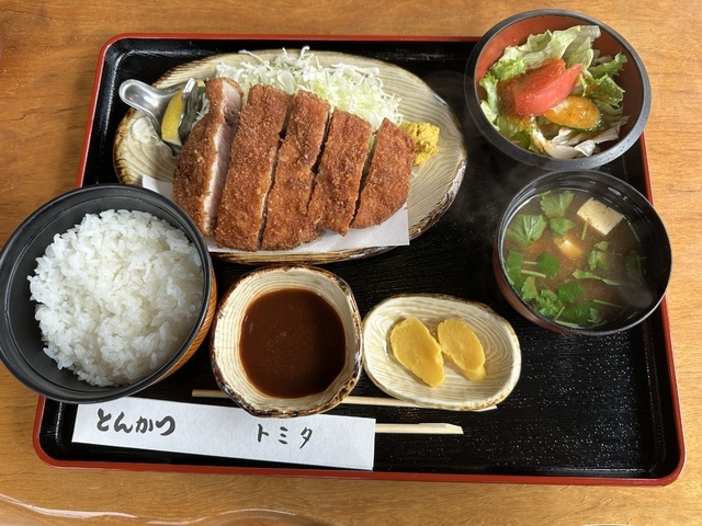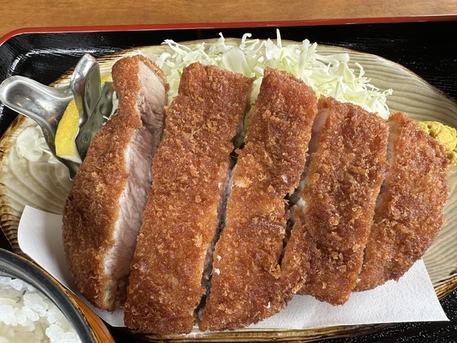 ●2025年11月9日(日) 雨 10:19訪問 11:00着座 11:17着膳。 ●今回は、「上ロースカツ定食(リブロースカツ260g+ライス+ナメコ汁+野菜サラダ+漬物)2,300円」を注文して女性店員に写真撮影の許可を頂きました。 ●座敷のテーブル席で温かいお茶を飲みながら待っていると17分後に発注した「上ロースカツ定食」が着膳しました。 ●上ロースカツは、お皿にキャベツ、リブロースロースカツ5切れ、レモン、辛子が盛り付けてあり、カツのお肉が厚くて柔らかくてレモン汁を搾りソースと辛子を付けて食べたら非常に美味しかったです。 ●今まで食べたカツの中でお肉が一番柔らかいカツで美味しかったです。 ●野菜サラダは、レタス、胡瓜、トマトが鮮やかに盛り付けてあり、ドレッシングとの相性が良くて美味しかったです。 ●ナメコ汁は、ナメコ、ミツバ、豆腐が入っている味噌汁で美味しかったです。 ●ロースカツ定食でナメコ汁の付いていた定食を食べたのは初めてで美味しかったです。 ●漬物は、出汁のきいた漬物で美味しく頂きました。 ●代金の支払いでPayPayが使用できるので大変便利だと思いました。