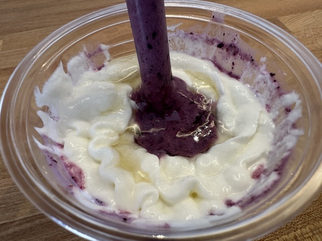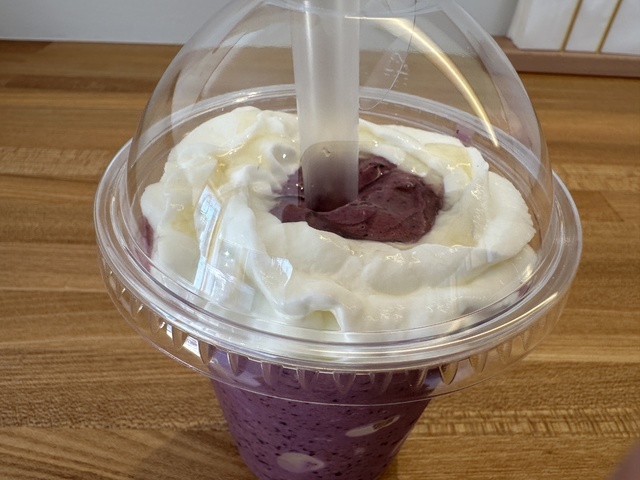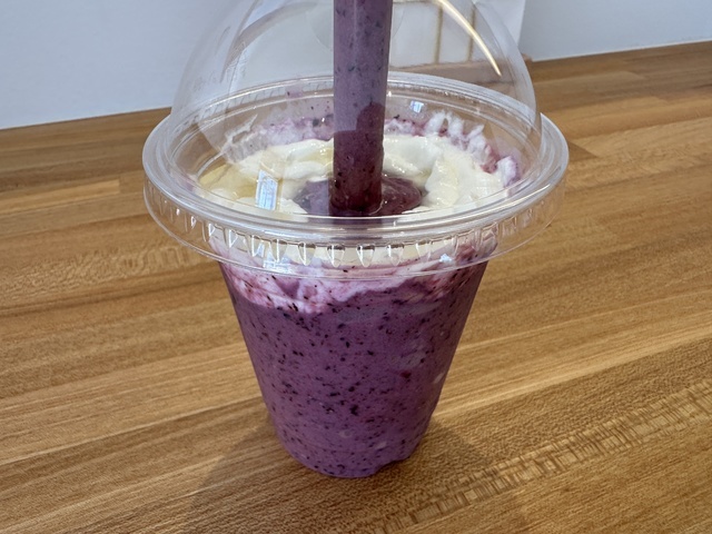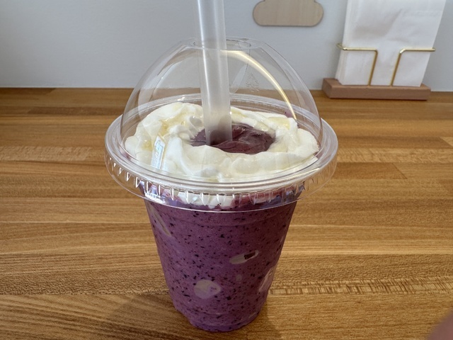 フォローする●2025年11月1日(土) 晴 12:04訪問 12:09着カップ。 ●今回は、店員に確認したお勧めの「ダブルベリー650円」を注文して写真撮影の許可を頂きました。 ●カウンター席で待っていると5分後に発注した「ダブルベリー」が着カップしました。 ●ダブルベリーは、カップにストロベリー、ブルーベリー、バナナのドリンクにヨーグルトが盛り付けてあり、思っていたよりも酸味が控えめで美味しかったです。 ●最初は、そのまま飲んでお店の味を楽しみ、少し飲んだらドリンクとヨーグルトを混ぜて飲んで別の味を楽しみました。 ●代金の支払いでPayPayが使用できるので大変便利だと思いました。 ●美味しいドリンク味わう事ができるので、又、訪問したいと思います。ご馳走様でした。