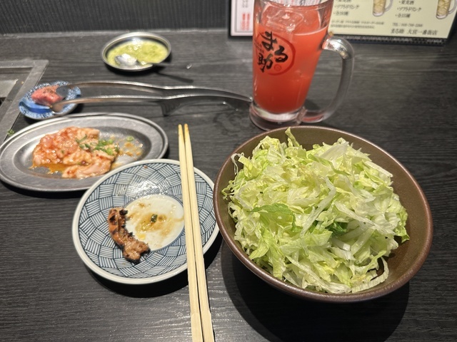 フォローする●2025年12月26日(金) 晴 19:05訪問。 ●今回は、「2時間飲み放題(生ビールなし)1,650円」を1,099円で注文して女性店員に写真撮影の許可を頂きました。 ●飲み物は、飲み放題の「ハイボール」を頂きました。 ●ハイボールは、飲みやすくて美味しかったです。 ●料理は、店員に確認したお勧めの「タレ生モツ528円」を頂きました。 ●タレ生モツは、新鮮でお肉が柔らかくて味がついているので焼いてそのまま食べても美味しかったです。 ●飲み物の追加で「トマトサワー」を頂きました。 ●トマトサワーは、炭酸のきいたトマト味のサワーで飲み易くて美味しかったです。 ●飲み物追加で「日本酒(冷酒)」を頂きました。 ●日本酒(冷酒)は、リーズナブルな割に美味しかったです。 ●料理の追加で「無限レタス(おかわり無料)528円」を頂きました。 ●無限レタスは、新鮮なレタスがたっぷり盛り付けてありそのまま食べても食感が良くて美味しかったです。 ●飲み物の追加で「レモンサワー」等を頂きました。 ●代金の支払い方法は、現在カード等を手続き中のため現金のみでした。