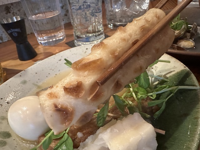 ●2026年2月6日(金) 晴 19:17訪問。 ●今回は、キープしておいたボトルで「ウイスキーの水割り」を注文して女性店員に写真撮影の許可を頂きました。 ●ウイスキーの水割りは、飲み易くて美味しかったです。 ●料理は、「お通し550円」とInstagramに投稿されていて美味しそうに見えた「アサリの酒蒸し660円」を頂きました。 ●お通しは、2種類の料理が盛り付けてあり美味しかったです。 ●アサリの酒蒸しは、お皿にたっぷりのアサリが入っていてお酒との相性が良くて美味しかったです。 ●料理の追加で「おでん盛り合わせ660円」を頂きました。 ●おでん盛り合わせは、多数のおでんが鮮やかに盛り付けてあり、辛子を付けて食べたら美味しかったです。 ●ウイスキーボトルが終わったので「シーバスリーガルボトル7,000円」のニューボトルをキープして水割りを頂きました。 ●シーバスリーガルの水割りは、口当たりが良くてウイスキーが美味しかったです。 ●あがりでInstagramに投稿されていて美味しそうに見えた「焼きおにぎり660円」を頂きました。