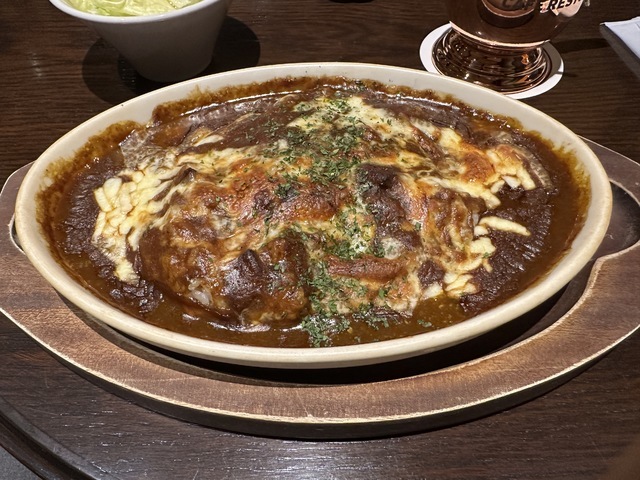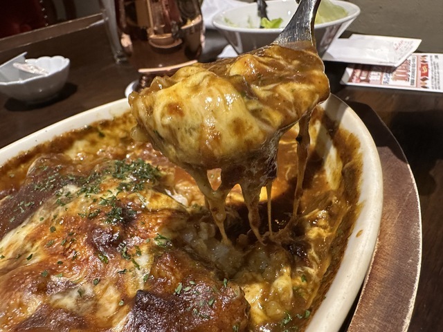 ●2026年2月19日(木) 晴 12:07訪問 12:17着皿。 ●今回は、「焼きチーズカレー(カレー+野菜サラダ+アイスコーヒー)1,100円」を「100円OFFクーポン」を使用して1,000円で注文して女性店員に写真撮影の許可を頂きましました。 ●テーブル席でお冷やを飲みながら待っていると10分後に発注した「焼きチーズカレー」が着皿しました。 ●焼きチーズカレーは、辛さが控えめで濃厚なカレーの上にチーズがたっぷり盛り付けてあり熱々の焼きカレーで美味しかったです。 ●野菜サラダは、新鮮なレタスやミニトマトが鮮やかに盛り付けてあり、ドレッシングとの相性が良くて美味しかったです。 ●アイスコーヒーは、美味しかったのでブラックで飲みました。 ●代金の支払いでd払いが使用できて「ヤマダポイント」が付与されるので大変便利だと思いました。 ●美味しいランチを味わう事ができるので、又、訪問したいと思います。ご馳走様でした。