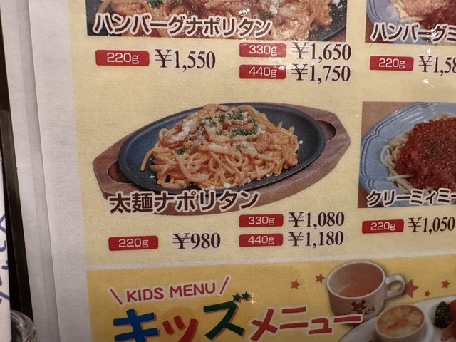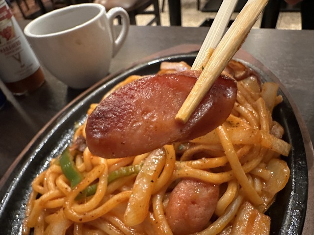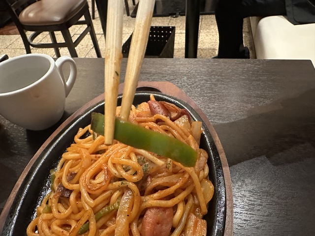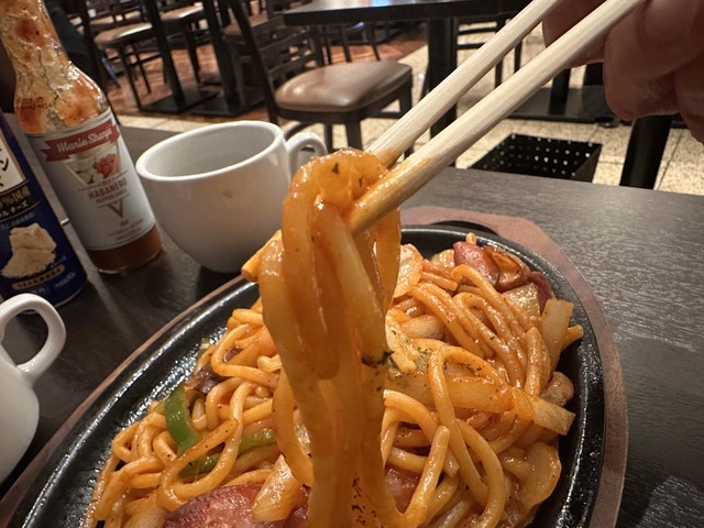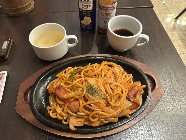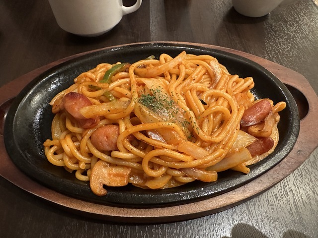 ●2026年2月20日(金) 晴 12:08訪問 12:18着皿。 ●今回は、「太麺ナポリタン(200g)980円」を「100円OFFクーポン」を使用して880円で注文して女性店員に写真撮影の許可を頂きましました。 ●テーブル席でお冷やを飲みながら待っていると10分後に発注した「太麺ナポリタン」が着皿しました。 ●太麺ナポリタンは、太麺パスタの上にウインナー、玉ねぎ、ピーマン、マッシュルーム等が盛り付けてありトマトソースとの相性が良くて美味しかったです。 ●最初は、ナポリタンをそのまま食べてお店の味を楽しみ、少し食べたらパルメザンチーズとホットソースをかけて食べて別の味を楽しみました。 ●ホットコーヒーは、挽きたてのコーヒーで美味しかったのでブラックで飲みました。 ●スープをおかわりしました。 ●代金の支払いでd払いが使用できて「ヤマダポイント」が付与されるので大変便利だと思いました。 ●美味しいランチを味わう事ができるので、又、訪問したいと思います。ご馳走様でした。