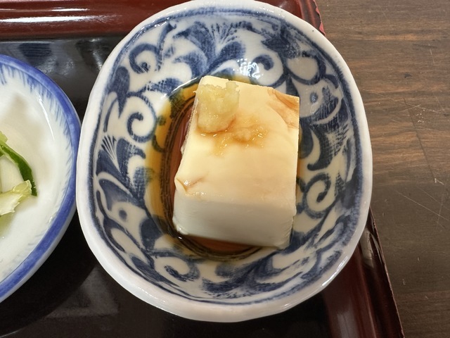●2026年2月21日(土) 晴 11:31訪問 11:39着膳。 ●今回は、「鶏照り丼(丼+けんちん汁+漬物+小鉢+アイスコーヒー+デザート)1,280円」を注文して女性店員に写真撮影の許可を頂きましました。 ●カウンター席でお冷やを飲みながら待っていると8分後に発注した「鶏照り丼」が着膳しました。 ●鶏照り丼は、ご飯の上にタレ、鶏肉、温泉玉子、レタス、紅生姜、青ネギが鮮やかに盛り付けてありました。 ●鶏肉は、お肉が柔らかくて甘いタレとの相性が良くて非常に美味しかったです。 ●最初は、そのまま食べてお店の味を楽しみ、少し食べたら温泉玉子の黄味を割って食べて別の味を楽しみました。 ●汁物は、味噌汁ではなく、大根、ウインナー、コンニャク、牛蒡、玉ねぎ、ニンジン等の具が入った薄味のけんちん汁で美味しかったです。 ●漬物は、キャベツ、胡瓜、梅が盛り付けてあり、薄味の漬物で美味しかったです。 ●小鉢は、ニンジンと牛蒡とゴマが盛り付けてあり美味しかったです。 ●アイスコーヒーは、甘さが控えめで美味しく頂きました。 ●デザートは、2種類のけーきと生クリームが盛り付けてあり美味しかったです。