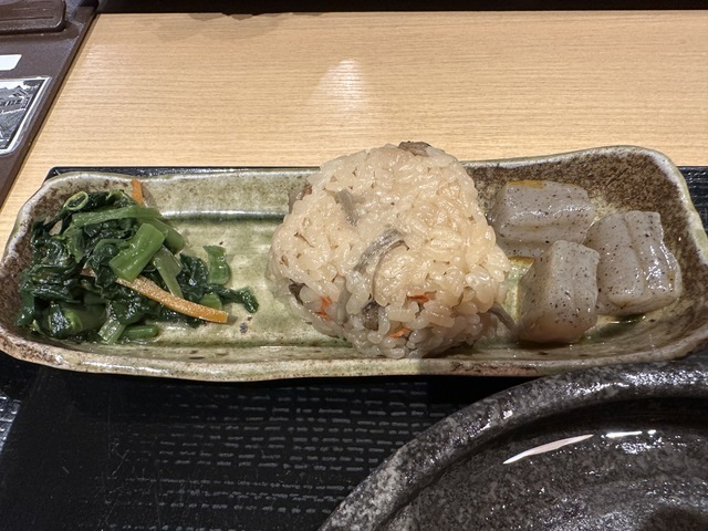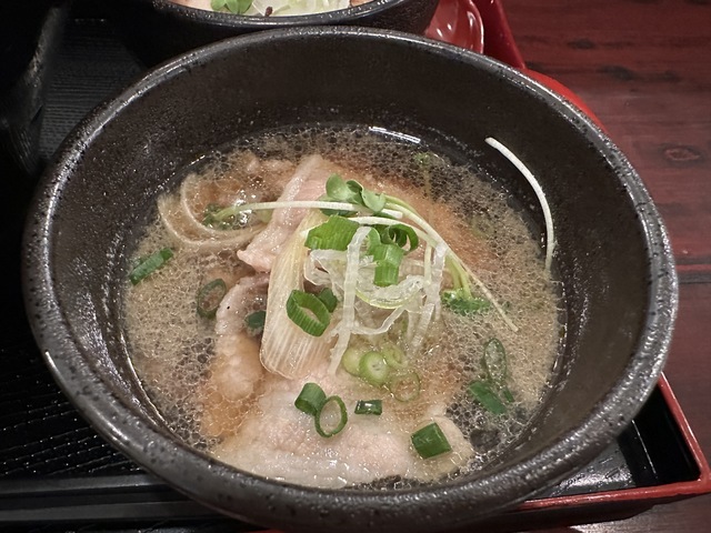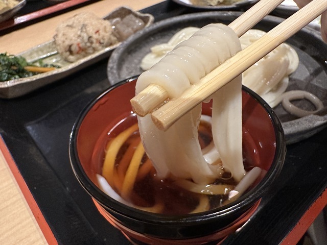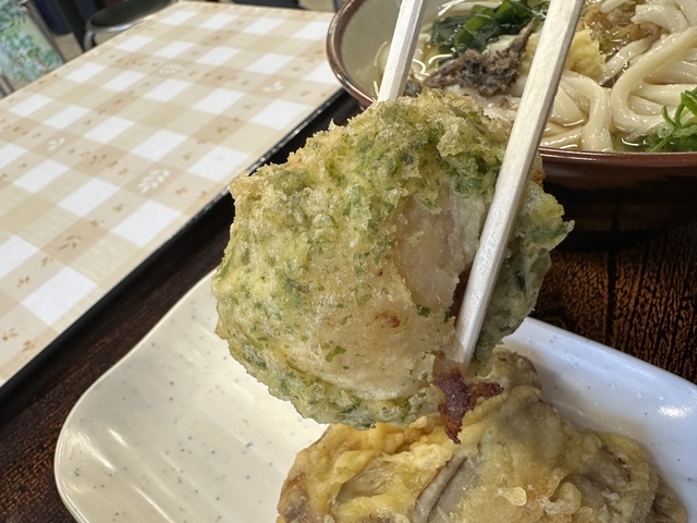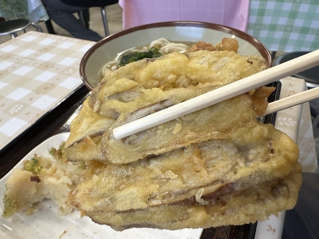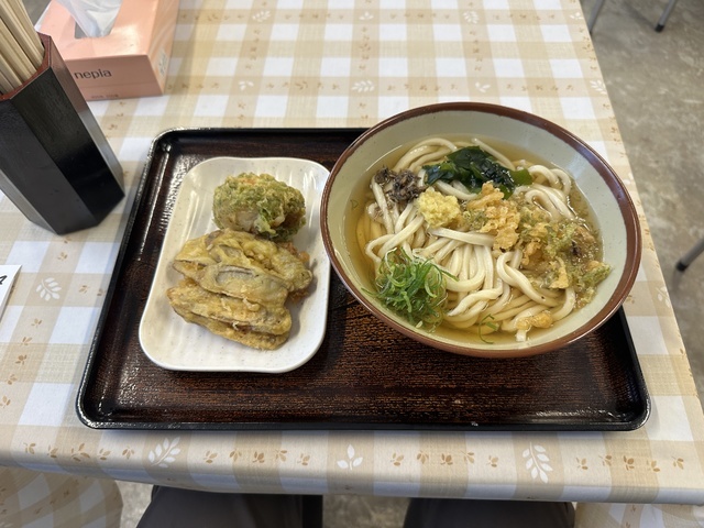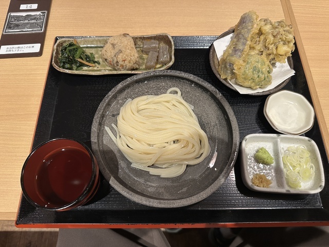 ●2026年4月14日(火) 晴 12:11訪問 12:21着膳。 ●今回は、11:00〜15:00まで「Aランチセット(小もりうどん麺240g+天ぷら盛り合わせ+おにぎり)1,190円」を注文して、女性店員に写真撮影の許可を頂きました。 ●先ずは、麺とスープの味見をしてから残りの麺と天ぷらとおにぎり等を食べました。 ●麺は、もちもちして食感の良い極太麺で美味しかったです。麺の量は、240gありました。 ●スープは、出汁がきいてあっさりした醤油スープで非常に美味しかったです。 ●最初は、麺をスープに付けてそのまま食べてお店の味を楽しみ、少し食べたら生姜と山葵の薬味を入れて食べて別の味を楽しみました。 ●天ぷらは、ピーマン、茄子、舞茸の天ぷらが盛り付けてあり、塩を付けて食べたら美味しかったです。 ●おにぎりは、炊き込みご飯で作ったおにぎりで美味しかったです。 ●健康には、良く無いと思いながらスープを全部飲み干しました。 ●代金の支払いで「Suica」が使用できてJREポイントが付与されるので大変便利だと思いました。 ●美味しい水沢うどんを味わう事ができるので、良いと思います。
