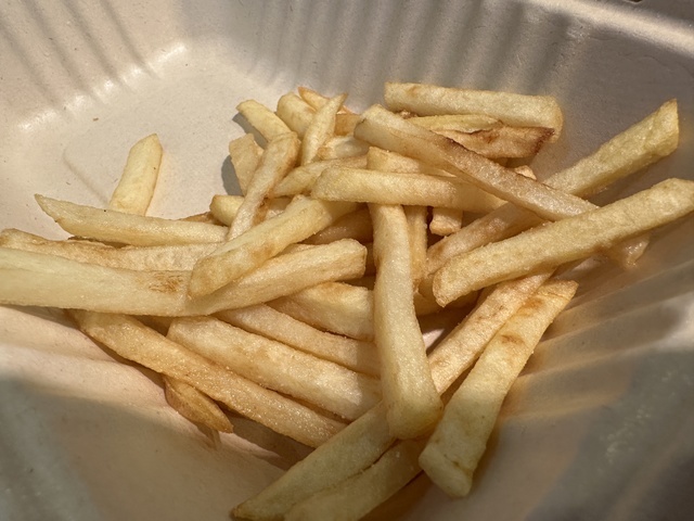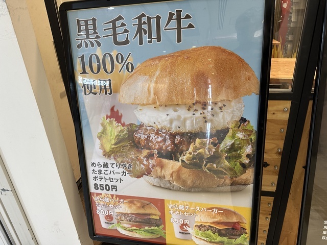 ●2026年4月15日(水) 晴 12:09訪問/12:21着パック。 ●今回は、メニュー写真の一番上に掲載されていたお勧めと思われる「めら蔵てりやきたまごバーガーポテトセット(850円)」を注文し、写真撮影の許可もいただきました。 ●お冷やを飲みながら待っていると、12分後に番号を呼ばれ、カウンターへ受け取りに行きました。 ●めら蔵てりやきたまごバーガーは、パテに黒毛和牛を使用したハンバーガー、レタス、玉ねぎ、目玉焼きなど具材がたっぷり入り、甘めのタレとよく合って美味しかったです。 ●セットのフライドポテトはやや柔らかめの食感でしたが、薄味で食べやすく美味しくいただきました。 ●支払いには「Suica」が使用でき、「JREポイント」も付与されるので大変便利です。 ●他にもステーキや焼きそばなど美味しそうなメニューがあり、また訪問したいと思います。ご馳走様でした。