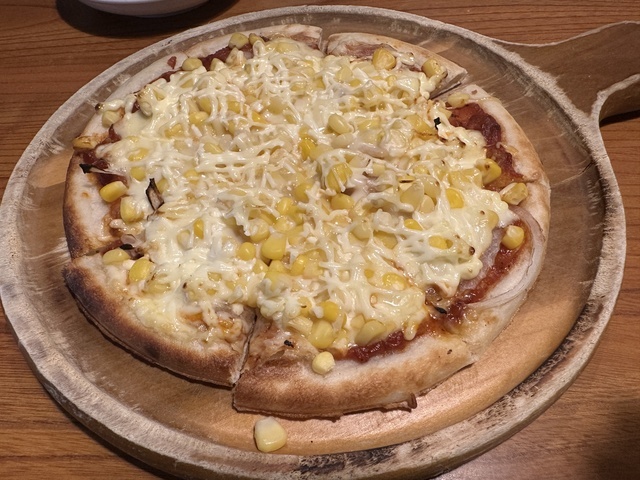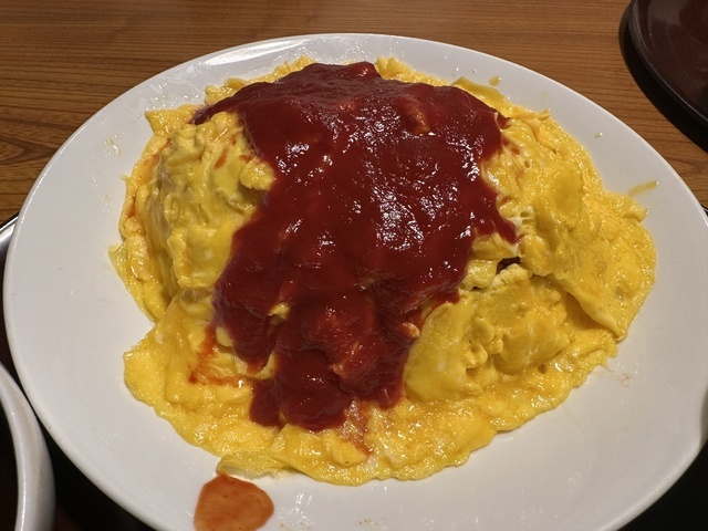●2026年4月16日(木) 晴 18:06訪問/18:27着膳。 ●今回は、「[5375]デカ盛りオムライス(ご飯500g+たまご6個=合計1kg)1,969円」「[5505]大もりうどん 878円」「[6989]コーンマヨピザ 878円」を注文し、写真撮影の許可もいただきました。 ●どの料理もボリュームがあり、3人でシェアして楽しみました。 ●個室でお冷やを飲みながら待っていると、21分後に「デカ盛りオムライス」が着膳。 ●デカ盛りオムライスは、ケチャップライスの中に具材がたっぷり入り、玉子6個を使用した総重量1kgの迫力ある一皿。まずはそのまま味わい、途中からデミグラスソースをかけて味変すると、さらに美味しくいただけました。 ●野菜サラダは、レタス・ミニトマト・カイワレ大根・パプリカにバルサミコスチーズとドレッシングがかかっており、爽やかで美味しかったです。 ●うどんは、麺を薄味の醤油スープにつけて食べるスタイルで、シンプルながら美味しくいただきました。 ●コーンマヨピザは、コーン・チーズ・マヨネーズのシンプルな組み合わせながら、想像以上に美味しくて驚きました。
