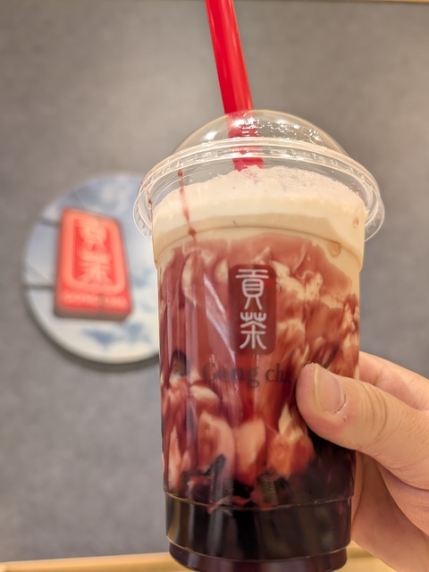 季節のおすすめ・あふれる巨峰ミルクティーを飲みました。 巨峰のゼリーとソース・ミルクティーが凄くマッチしていて 巨峰がとても新鮮で美味しかった! ミルクティーだけの味は苦手だけど、濃厚な巨峰と甘さを選べるおかげで 飲みやすく、苦手克服になりました!