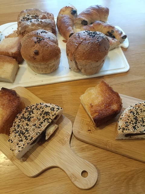 こんな可愛いパン屋さんが!永明公民館の目の前です。12時に行くとパンがたくさん並んでいました。焼きたてもあって、とても美味しくいただきました。自宅用に限定セットパン(ランダムに3つ入って500円とお得)を2つ購入。サンドイッチもとても美味しかったです。
