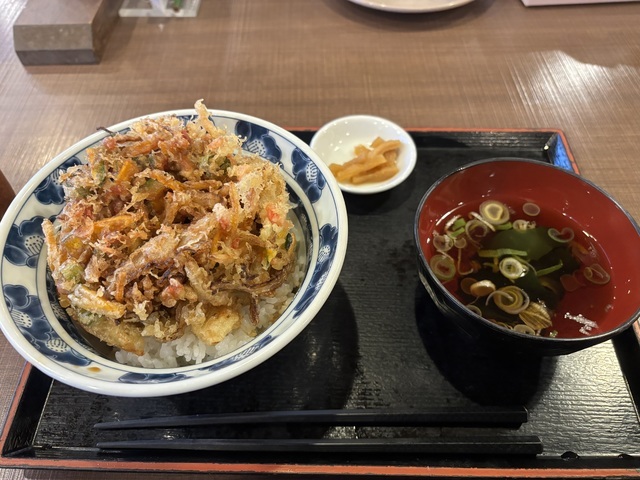 16時過ぎくらいに行きました。かき揚げ丼¥700、かき揚げそば¥780、かき揚げ丼テイクアウト¥750を注文。女性の店員がお一人で調理されており、立て込むと特に大変そうでしたが、接客にも手を抜かず一生懸命にやってくれました。かき揚げはサクサクでした!