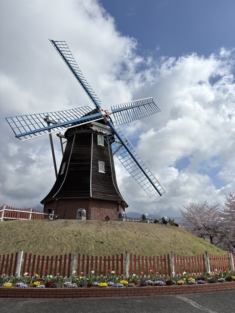 今年も桜並木を観に行きました!連日の雨風で散ってしまってないか心配になりましたが、意外と残っています。自然の脅威に負けず、一生懸命に咲く桜に、勇気を貰います。また、風車周りのチューリップは、整備が行き届いており、地元民の心遣いでほっこり。