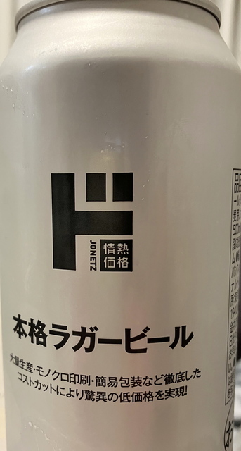 今回のおすすめはドンキオリジナルの本格ラガービール。デザインをモノクロにして簡易包装でコストカットしたそうでお安め。ベトナム製ですがドイツとフランスの素材を使っていてなかなかの味わいです。ノンアル版もあります。ビール党の方はぜひお試しを♬