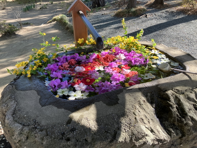 出かけた帰りにお参りに。いつ伺っても境内がきれいに清められていて気持ちがいいですね。長らく使えなかった手水が復活。花々できれいに飾られていました♬