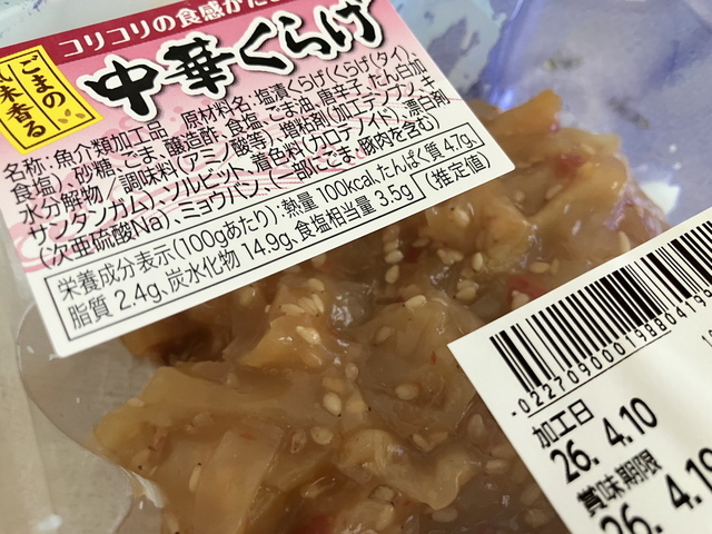 おつまみを買いに寄りました。看板をよく見たらスーパーマーケットからフードパークに変わっていたのですね。食感が楽しそうな「中華くらげ」の小パックを買ってみました。セルフレジもあってお支払いがスムーズ♬