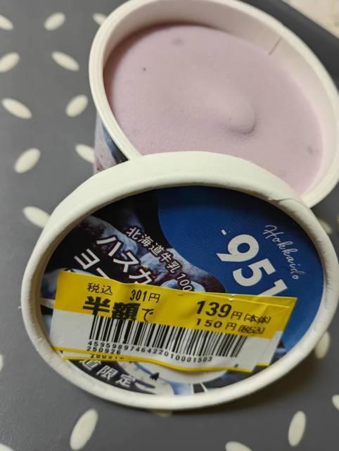 先日、ふらりと立ち寄ったこちらのベイシアにて、半額に値下がりしたアイスを購入しました!北海道牛乳100%使用したハスカップヨーグルトアイス、驚くほど美味しかったです!!ヨーグルトを使用しているので、少し酸味があるので爽やかな味わいでした。どこかで見掛けたらまた買いたいです♪ (投稿:2025/09/30 掲載:2025/09/30)