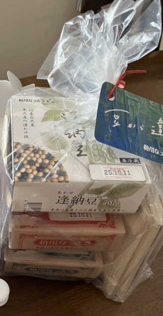 先週テレビで取り上げられており、思わず食べたくなって早速いきました!連日、スーパーで卸したものは品切れが目立ち、さすがの人気ぶりに驚愕。しかし今日は平日だったので、直売所のほうはスムーズ。4種入って¥1000のものを購入!豆1粒1粒が大きくて、粘り気が少なく、臭みもありません!これが真の納豆ですね。美味しくて、ご飯がもっと食べたくなります。 (投稿:2025/09/30 掲載:2025/10/01)