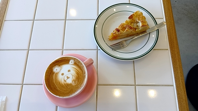 アップルパイ650円、ディカフェのカフェラテ630円です。 アップルパイは、たっぷりの煮りんごが入り、サクサクパイ生地で美味しかったです。 ディカフェがあるのも、嬉しいです。 (投稿:2025/12/26 掲載:2026/01/06)