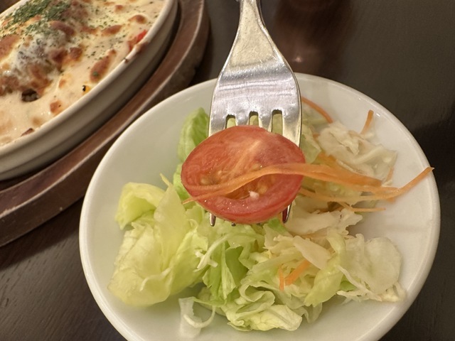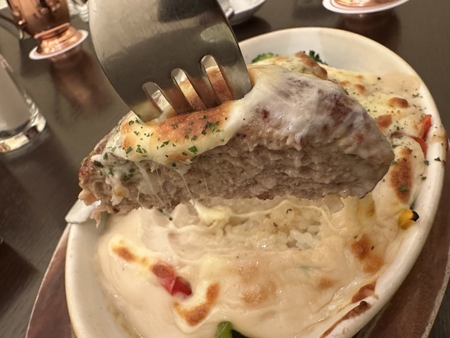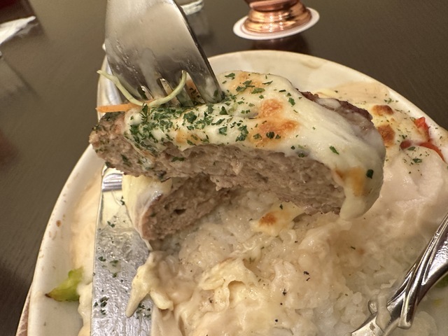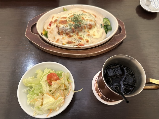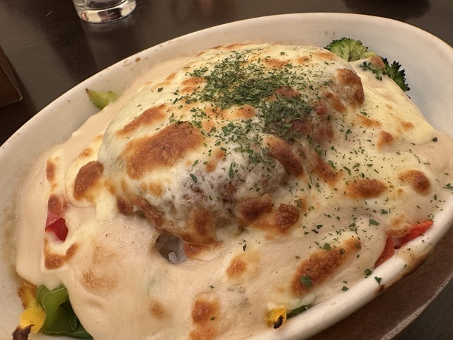 ●2026年1月14日(水) 晴 12:08訪問 12:28着皿。 ●今回は、「ハンバーグドリア(ドリア+野菜サラダ+アイスコーヒー)1,200円」を注文して女性店員に写真撮影の許可を頂きましました。 ●テーブル席でお冷やを飲みながら待っていると20分後に発注した「ハンバーグドリア」が着皿しました。 ●ハンバーグドリアは、ご飯の上にクリームソースとハンバーグが盛り付けてありました。 ●ハンバーグは、焼きたてで熱々の柔らかいハンバーグで美味しかったです。 ●野菜サラダは、レタス、ニンジン、ミニトマト等が盛り付けてあり、ドレッシングとの相性が良くて美味しかったです。 ●思っていたよりもご飯の量が多くてお腹が一杯になりました。 ●アイスコーヒーは、美味しかったのでブラックで飲みました。 ●代金の支払いでd払いが使用できてヤマダポイントが付与されるので大変便利だと思いました。 ●美味しいランチを味わう事ができるので、又、訪問したいと思います。ご馳走様でした。 (投稿:2026/01/15 掲載:2026/01/15)