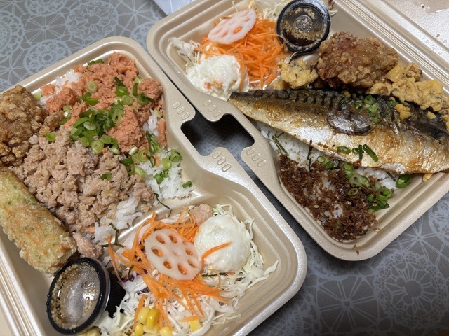 ポイント交換してもらって久しぶりに伺いました。餃子も焼売ももちろん美味しいですが、ここの焼豚が美味いんですよ〜(チャーシューエッグ丼とか作ってほしいな~www)今日は晩酌用の焼豚と一緒にポイントで焼きサバと唐揚げの乗った豪華版のお弁当を!家で焼魚は面倒だし、スーパーのお惣菜じゃ味気ない、焼きたてのサバの塩焼きをお弁当で食べられるのは嬉しいですね。我ながら年を取ったもんだwwwもうひとつは嬉しいのり弁(海苔が見当たらないがなぜかのり弁というネーミング?)、そぼろと鮭フレークが美味しそうでしたよ。どちらもバランス良くしっかりと生野菜が添えられてるのがありがたいですね。【焼きサバも 私も脂 乗ってます。】 (投稿:2026/04/14 掲載:2026/04/14)