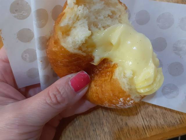 あちこちで聞く「生ドーナツ」、初めていただきました!こんなにふんわりしているの~!?と驚きでした。中のクリームはすっごくたっぷり入っていますが、ぜんぜんくどくなく、口当たりが軽~い!1つが大きめでも油も良いものを使っている様子で油っぽくありません。これは行列になるのもうなずける!おみやげにもいいですね~。良いお店がオープンしました! (投稿:2025/11/26 掲載:2025/11/26)