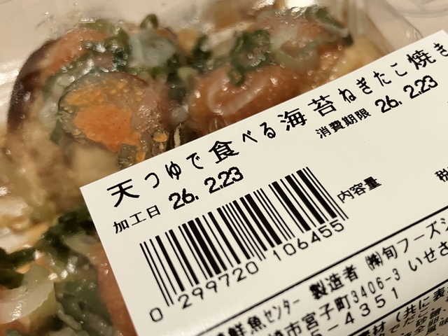 晩の一品は一番奥にある伊勢崎鮮魚センターさんの「天つゆで食べる海苔ねぎたこ焼き」。たこ焼きとしてはちょっとお高めですが大ぶりでボリューム感があります。こだわりの上質な味わいを楽しみました♬ (投稿:2026/02/23 掲載:2026/02/24)