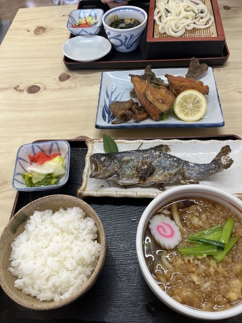 蝋梅が終わりに近いので、近くのロウバイパークで散策をしたあと、お昼をどこで食べようかと探していたところ、見つけました。手打ちうどんに川魚も食べられるとのことで、値段も良心的で外の景色も眺められ、お店の雰囲気も抜群です。メニューを決めて、レジで食券を購入するスタイルで、お水はセルフです。うどんはこしが強いタイプではないのですが、柔らかすぎるわけでもなく、とても美味しいうどんでした。また、鱒の塩焼きは全く臭みがなく、鱒の唐揚げは味がしっかりついていて、骨もパリパリと美味しかったです。良いお店に出会えたと感激しました。また4月にはロウバイパークでみつまたも咲くようですし、こちらで釣りもできるので、また訪れたいです。お魚とうどんが美味しすぎました。 (投稿:2026/02/24 掲載:2026/02/24)