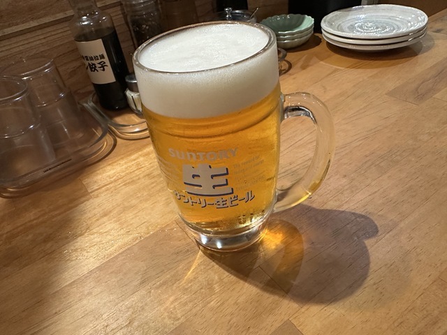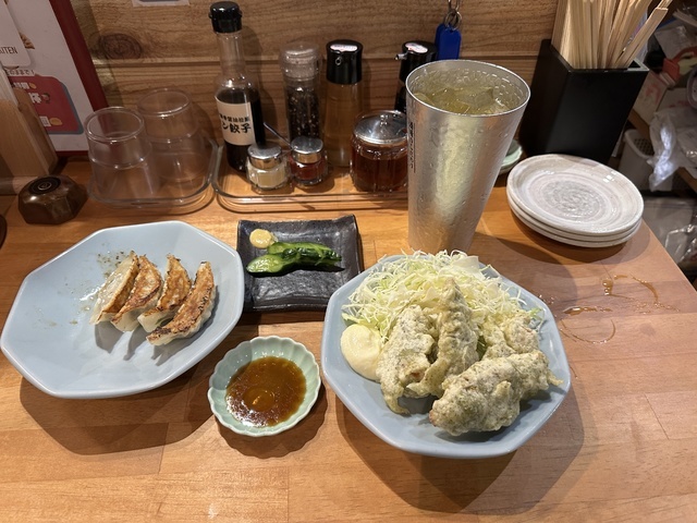 ●2026年3月18日(水) 雨。18:12に訪問しました。 ●まずは「0.5次会コース(飲み放題90分+料理2品)2,200円」の飲み放題「生ビール」を注文し、女性店員さんに写真撮影の許可をいただきました。 ●生ビールは飲みやすく、仕事終わりの一杯としてとても美味しかったです。 ●料理はコースの「オリオン餃子5個」「ちくわの磯辺揚げ」「きゅうり一本漬け」をいただきました。 ◆オリオン餃子:餃子専門店らしく、皮・餡ともにバランスが良く美味しかったです。 ◆ちくわの磯辺揚げ:キャベツとマヨネーズが添えられ、揚げたての香ばしさがあり、お酒との相性が抜群でした。 ◆きゅうり一本漬け:鮮やかな緑色で、さっぱりとした味わいが良かったです。 ●飲み物の追加で「メガハイボール」「ホッピーセット」「冷酒」などもいただき、どれも料理とよく合いました。 ●会計ではd払いが利用でき、キャッシュレス派としては大変便利だと感じました。 ●リーズナブルに美味しいお酒と料理を楽しめるお店なので、また訪問したいと思います。ご馳走様でした。 (投稿:2026/03/20 掲載:2026/03/23)