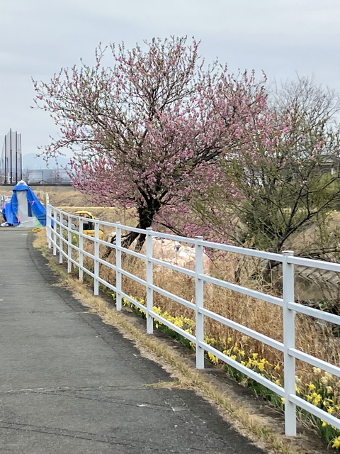 保渡田からの帰りに走りました。浜川公園裏手の迂回路近くに桜と水仙が咲き揃っていてきれいでした。少し北、モータースクール脇のかわいいソメイヨシノも咲き始めていました♬ (投稿:2026/03/20 掲載:2026/03/23)