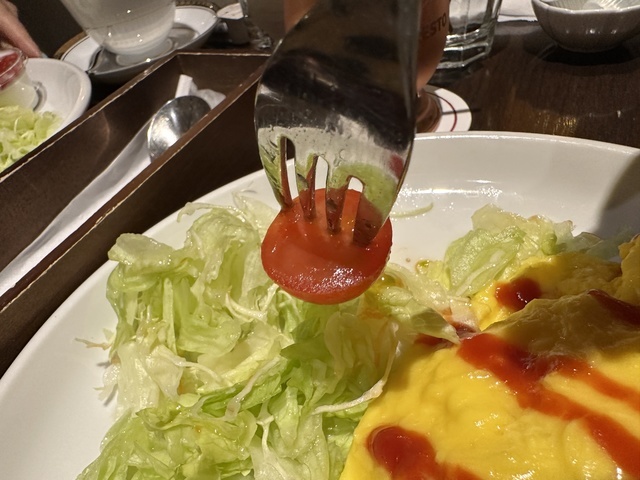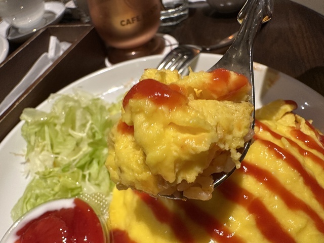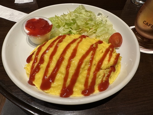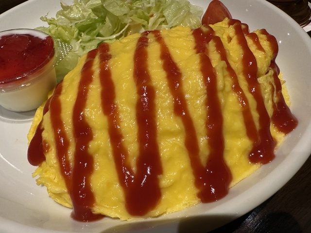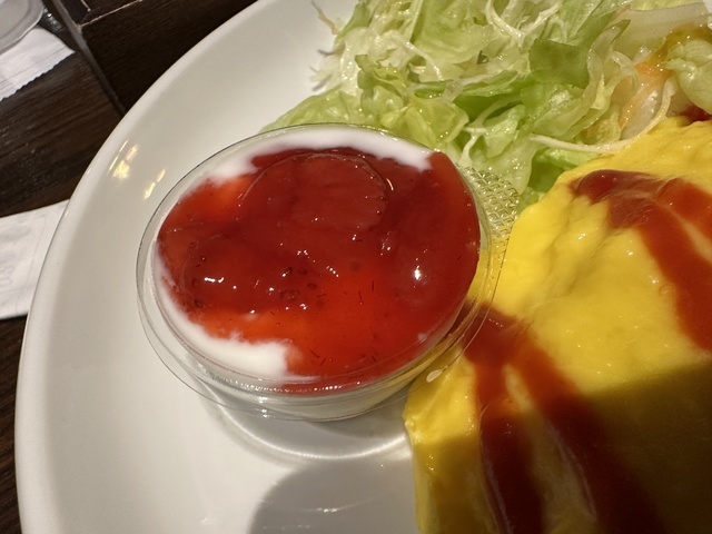 ●2026年3月19日(木)晴れ。12:10入店、12:30着皿。 ●今回は春メニューの「オムライス(サラダ・ヨーグルト・アイスコーヒー付き)1,100円」を注文。写真撮影の許可も快くいただけました。 ●お冷を飲みながら待つこと約20分、オムライスが到着。 ●ケチャップライスの上にふんわりとした玉子焼きがのり、ケチャップがかかったシンプルなスタイル。味付けはやや薄味で、優しい味わいが美味しかったです。 ●サラダはレタスとミニトマトのシンプルな組み合わせですが、ドレッシングとの相性が良く、こちらも美味しくいただきました。 ●アイスコーヒーはしっかりとした苦味と香りがあり、ブラックで美味しく飲めました。 ●ヨーグルトには鮮やかな苺シロップがかかっており、爽やかでヘルシーな一品でした。 ●お会計ではd払いが利用でき、ヤマダポイントも付与されるため、とても便利だと感じました。 ●他にも魅力的なランチメニューが揃っているので、また訪問したいと思います。ご馳走様でした。 (投稿:2026/03/20 掲載:2026/03/23)