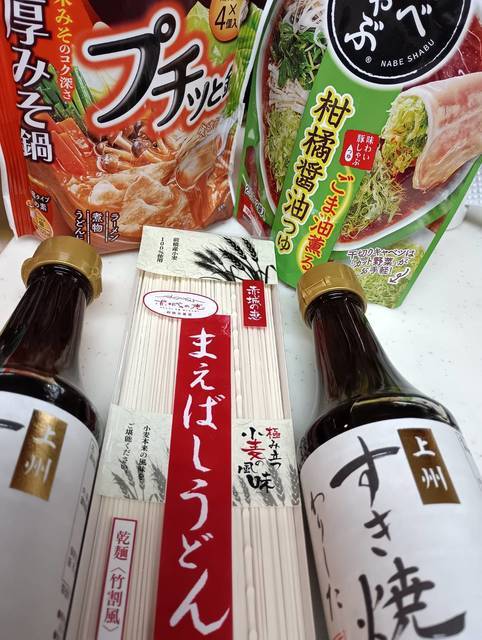 昨日利用しました!先週放送されたテレビ番組にて紹介された鍋の素を見て、思わずお肉と鍋の素を買いに行きました!笑 購入したのはエバラ「プチッと鍋」濃厚味噌味とエバラ「なべしゃぶ」柑橘醤油つゆ味です。子どもたちのリクエストで2種類の鍋を作りましたが、具材を切って混ぜるだけなので楽すぎます…涙 番組でもシェフたちが「美味しい!」と大絶賛していた商品で、実際にいただいたところ驚くほど美味しかったです!他にも、すき焼きの割り下やうどんなどを購入しました。前橋産の小麦を使用したうどんは半額だったので、とてもお安く購入出来て嬉しかったです! (投稿:2025/12/01 掲載:2025/12/10)