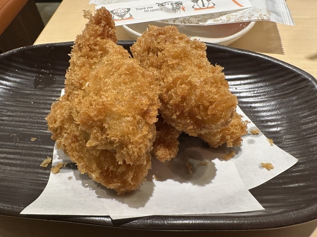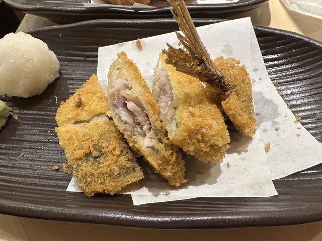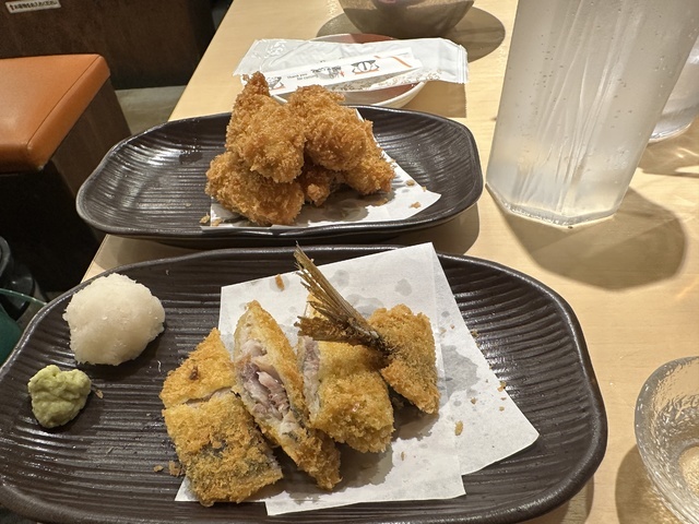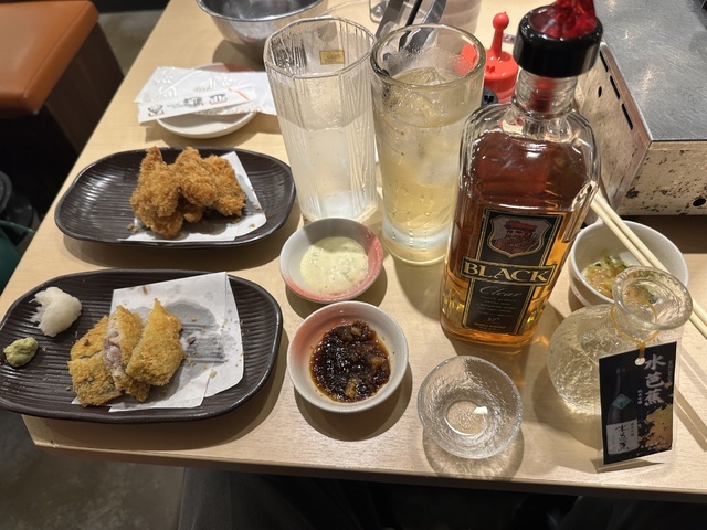●2026年4月27日(月) 晴れ。20:03訪問。 ●今回は「90分飲み放題(サワー&ハイボール)988円」を注文し、女性店員さんに写真撮影の許可をいただきました。 ●まずは飲み放題の「梅サワー」から。 ●サワーはテーブルに設置された蛇口から自分で注いで作るスタイルで、待ち時間がなく楽しめます。 ●梅サワーは甘くて口当たりが良く、とても飲みやすくて美味しかったです。 ●料理は「お通し 440円」「アジのレアフライ〜ワサビおろし〜 768円」「牡蠣フライ(5個)544円」を注文。 ●アジフライは揚げたて熱々で、大根おろしと山葵をのせて醤油をつけると旨味が引き立ち、とても美味しかったです。 ●牡蠣フライはタルタルソースとの相性が良く、こちらも美味しくいただきました。 ●追加の飲み物で「ハイボール」を頂きました。 ●ハイボールもテーブルにあるウイスキーボトルと炭酸水で自分で作れるため、提供を待たずに楽しめるのが魅力です。 ●さらに、冷酒「水芭蕉」は食べログクーポンを使用して無料でいただきました。 ●水芭蕉は飲みやすく、スッと入る上品な味わいでした。 (投稿:2026/04/29 掲載:2026/04/30)