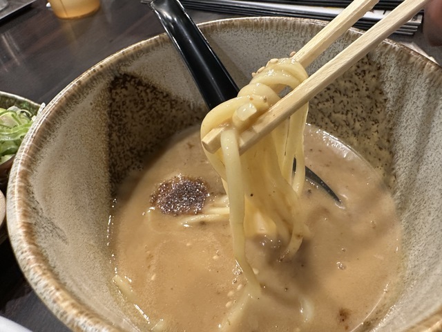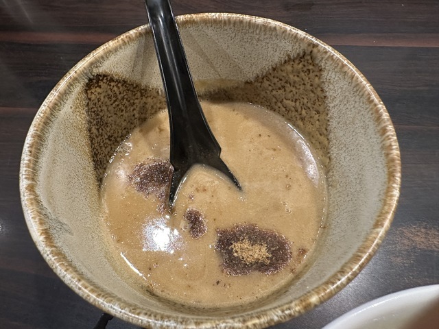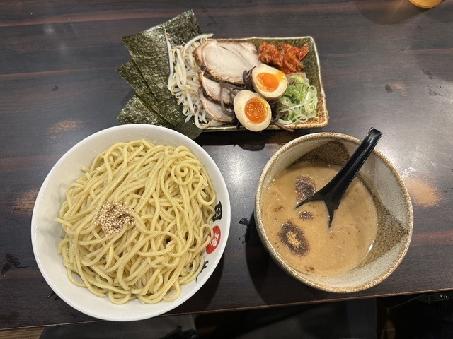 ●2026年4月28日(火) 晴れ。20:18訪問、20:25着丼。 ●今回は「濃厚魚介スペシャルつけ麺(大盛350g)1,490円」を注文し、写真撮影の許可もいただきました。 ●お冷やを飲みながら待っていると、注文から7分ほどで「濃厚魚介スペシャルつけ麺」が着丼。 ●特製トッピングは、味玉・チャーシュー・メンマ・もやし・木耳・キムチ・海苔・刻みネギが皿に美しく盛り付けられ、見た目からして豪華な一杯でした。 ●まずは麺とスープを味見してから、残りの麺をいただきました。 ●麺はもちもち食感の中太麺で、噛むほどに小麦の風味が広がり美味しかったです。 ●スープは濃厚な豚骨魚介で、旨味がしっかり感じられる力強い味わいでした。 ●チャーシューは大きめで柔らかく、薄味ながら肉の旨味がしっかりしていて美味しかったです。 ●麺とスープの絡みが非常に良く、気付けばスープが全て無くなってしまい、スープ割りをいただけなかったほどでした。 ●支払いではd払いが使用でき、とても便利だと感じました。 ●美味しいつけ麺を堪能できたので、また訪問したいと思います。ご馳走様でした。 (投稿:2026/04/29 掲載:2026/04/30)