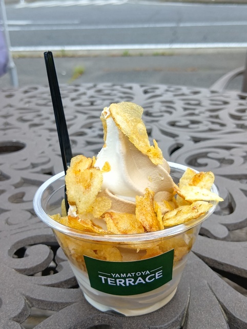 カフェオレソフトクリーム486円です。 ゴールデンウィーク限定で、ご当地グルメのトッピングが選べます。 石川県のポテトチップにしました。甘じょっぱくて、美味しかったです。 (投稿:2026/04/29 掲載:2026/04/30)