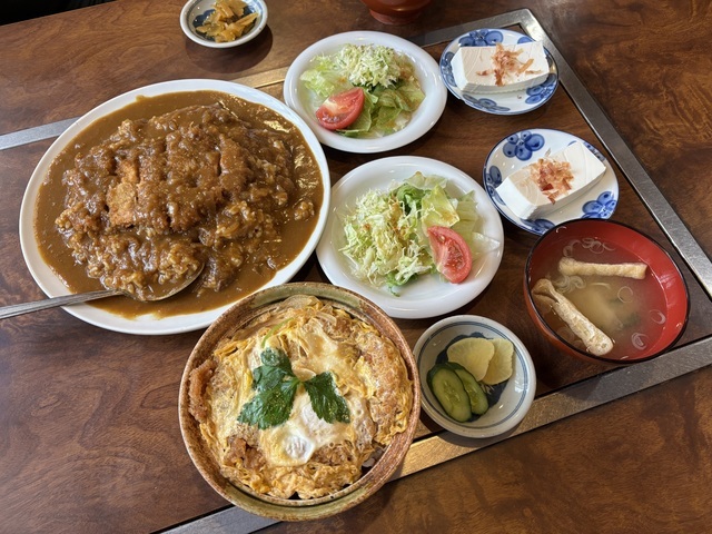 桐生の名店初訪問!丼もの、定食など全品¥800というコスパ。味噌汁、ミニサラダ、冷奴、お新香付。ライスは小盛~大盛~さらに...特盛またはてんこ盛り、盛れるだけは¥300増(但し、完食すれば¥100増で済む)並盛は400gなのでこれでも大満足であろう。人気メニューはカツカレーで、米だけで1.2kgの重量らしい!今日はカツカレーセット¥800とカツ丼セット¥800を注文。味付けは濃すぎなくて、こんなに多いのに飽きずに完食!ご飯が多すぎてオカズが足りなくなる笑 (投稿:2026/04/29 掲載:2026/04/30)