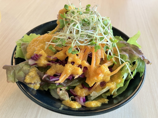 前橋新聞を見てランチに伺いました。「よーだカレー食べ放題」と「ミニサラダセット」を。カレーコーナーに皿がありますが、食べ放題は大きな皿を持って来て頂いて自分でライスとカレーを盛ります。ルーは黒に近い濃茶。牛と豚のうまみにあとから酸味が来ます。煮込まれた玉ねぎは溶けてしまって見えません。コクがあるのにさわやかなあと味ですね。ミニサラダの自家製にんじんドレッシングもナイス。ドリンクバー付きでウーロン茶をチョイス。本物の美味しさを税込1,100円で楽しませて頂きました。お店の方も素敵。また伺います。ごちそうさまでした♬ (投稿:2026/04/29 掲載:2026/04/30)