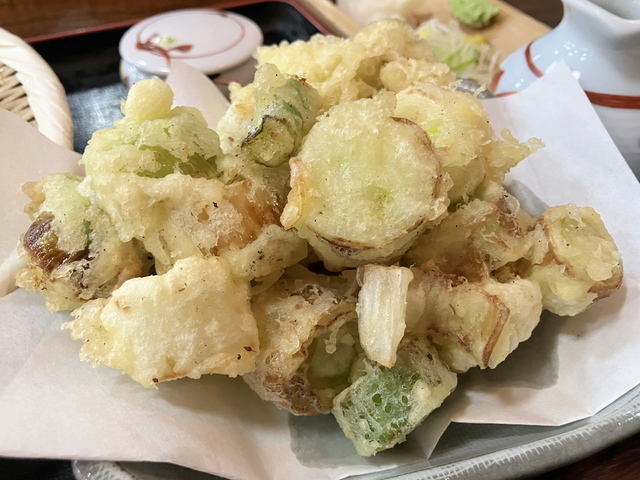 久しぶりの今日はいつもの「一人前」と「季節の天ぷら」をハーフで。布海苔つなぎのそばは変わらぬ美味しさ。節の香るほのかに甘いつゆがいいですね。刻みねぎ、ゆず、わさび、大根おろしで味変を楽しみました。季節の天ぷらは下仁田ねぎを(ほかに岩海苔の衣揚げもあります)。ハーフは一人前相当ですが山盛りでボリューム十分。あつあつを塩とつゆで味わいました。これも美味。そば湯のあとは寒天黒蜜がけでしめ。お値段変わらずありがたい限り。丁寧な接客も素敵です。ごちそうさまでした♬ (投稿:2026/01/17 掲載:2026/01/19)