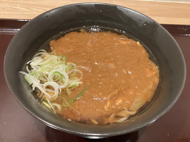 水曜と祝日が重なったせいか、訪ねた前橋中心部の名店3店が何とお休み!営業間違いなしのアクエル食堂に伺いました。11時半過ぎに着いて食券は21番となかなかの繁盛ぶり。今回は「カレーそば」(530円)を。かけそばにカレーと刻みねぎが載った定番ですね。ずしりと思い陶器の丼のおかげで温かいままつゆまで完食できました。ごちそうさまでした♬ (投稿:2026/02/11 掲載:2026/02/12)
