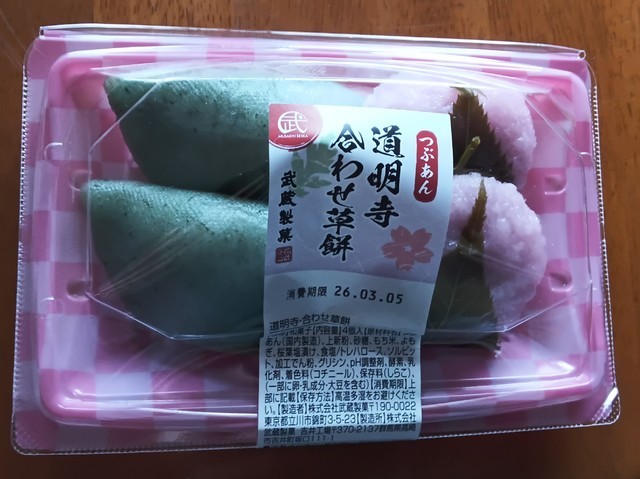 今日は3月3日ひな祭りなので、お寿司コーナーが充実、桜餅や草餅もたくさん並んでいました。桜餅はクレープタイプの関東風、道明寺粉の関西風があり、私は道明寺粉の桜餅派です。甘さ控えめで美味しかったです。 (投稿:2026/03/03 掲載:2026/03/04)