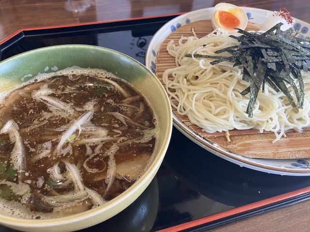 今回はそばをお休みして「江戸つけめん少なめ(半玉付)」を。普通のはらーめんの2倍の麺量、少なめは1.2倍量で半玉が付きます。麺は極細、ざるに盛られて刻み海苔が載って登場。ほろほろのちゃーしゅーとネギの入ったアツアツのつゆはとろり濃厚、でもしつこくないです。麺をつけてのどごしを楽しみました。半玉のあとは大根おろしをつゆにいれてさっぱりと。締めにはつゆをスープ割で半分ぐらい飲んでしまいました。「うますぎそば」に負けず美味しいですね。味だけでなく元気な店員さんも魅力。ごちそうさまでした♬ (投稿:2026/03/22 掲載:2026/03/23)