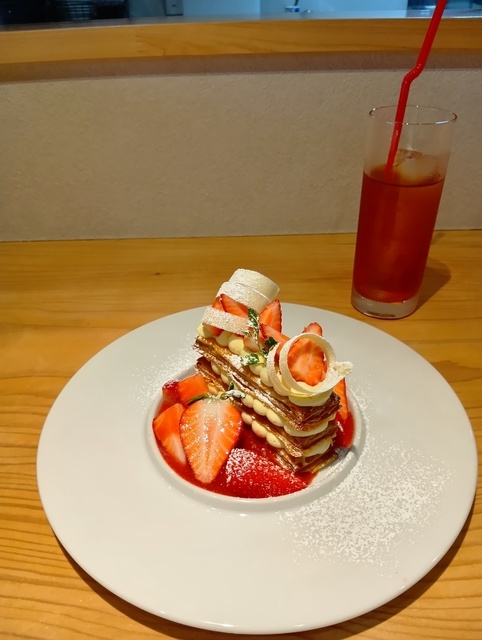 いちごミルフィーユセット1600円です。飲み物は、暑かったので、アイスティーです。 ミルフィーユにいちご別添えなので、最後までさくさく出美味しかったです。アイスティーもアールグレイの香り良かったです。 (投稿:2026/04/05 掲載:2026/04/06)
