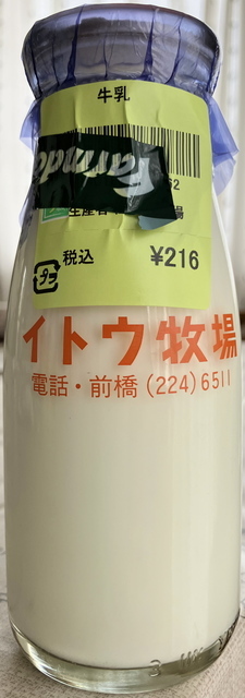 今日の狙いは伊藤牧場の牛乳。図書館で借りた牛乳の本に載っていました。こだわりの製法だそうでネットで取扱店を調べてこちらへ。定番らしく売場にちゃんとありました。小中の給食はびん牛乳だったので懐かしいですね。明日の朝食に頂きましょう♬ (投稿:2026/04/18 掲載:2026/04/20)