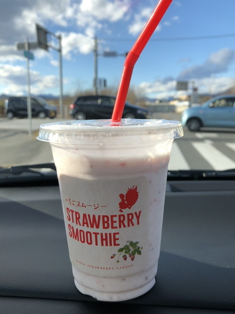 以前お店の前を通った時から「絶対飲みたい!」とうるさい人がいたので、出かける途中で寄って買ってあげました。県外ナンバーまでお客さんが途切れません。いちごのミルクスムージーをやよいひめで。「超美味しい♪」そうです。そりゃあそうでしょうね。。。次はいちご大福を買いに伺います! (投稿:2020/12/26 掲載:2020/12/28)