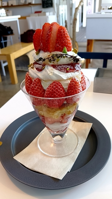 紅茶550円、いちごパフェ1373円です。 いちごは甘くて新鮮なものが載っていて、おいしいです。メレンゲやパイなど入り凝っていました。 (投稿:2026/01/10 掲載:2026/01/13)