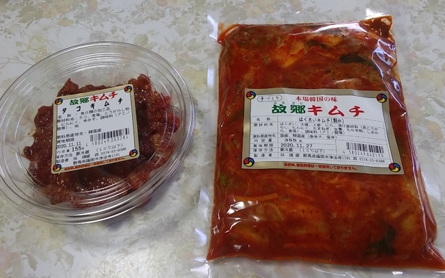 う☆どん子さんのクチコミの写真を見たら、タコキムチが写っているじゃないですか。私、魚介類のキムチの中ではタコキムチが一番好きでして、堪らず買いに行ってしまいました。大きめにブツ切りされたタコが入ってる~。ニンニクの細切れもたっぷり入っていて、旨くて辛い。これが本場の味なんですねえ。白菜キムチも美味しくて、キムチ味と言ってもそれぞれ差があるんだなあと感じました。この店、以前は試食品が何品かあったのですが、コロナの影響で一旦中止になっていました。コロナには私の楽しみを奪われてばかりです(ToT)。 (投稿:2020/10/31 掲載:2020/11/02)