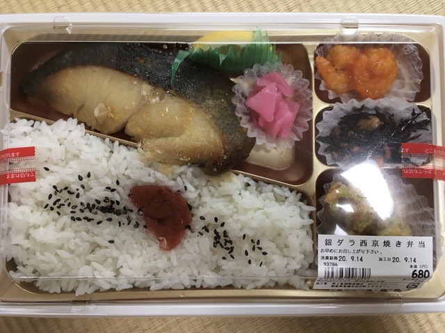 お昼ご飯にお弁当を購入しました。いつもなら握り寿司にしますが、今日は気分を変えて銀ダラ西京焼き弁当です。大きな銀ダラがとても美味しそうに見えました。食べてみると、身はふっくら、味もよくしみこんでいて、ご飯が進む味付けでした。サイドにはエビチリ、ひじきの煮物、帆立の天ぷらが少量添えられており、女性受けしそうなバランスの良いお弁当でした。いつも食べる握り寿司のお弁当はもちろんですが、さすが新鮮なお魚を扱っているお店なだけあって、焼き魚もとても美味しかったです。鮭のお弁当も鮭が大きくて美味しそうだったので、次回食べようと思います。 (投稿:2020/09/14 掲載:2020/09/15)